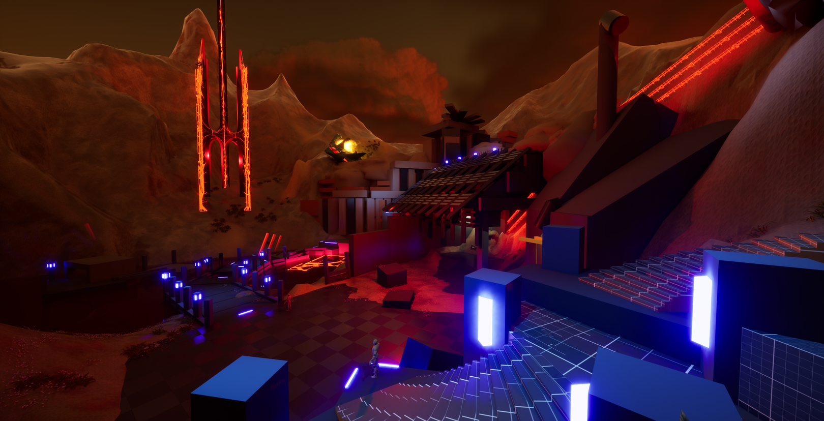 Cyberearth, my ongoing level design project in Unreal Engine 5 for the SKVOT School course, set to evolve further until late February.